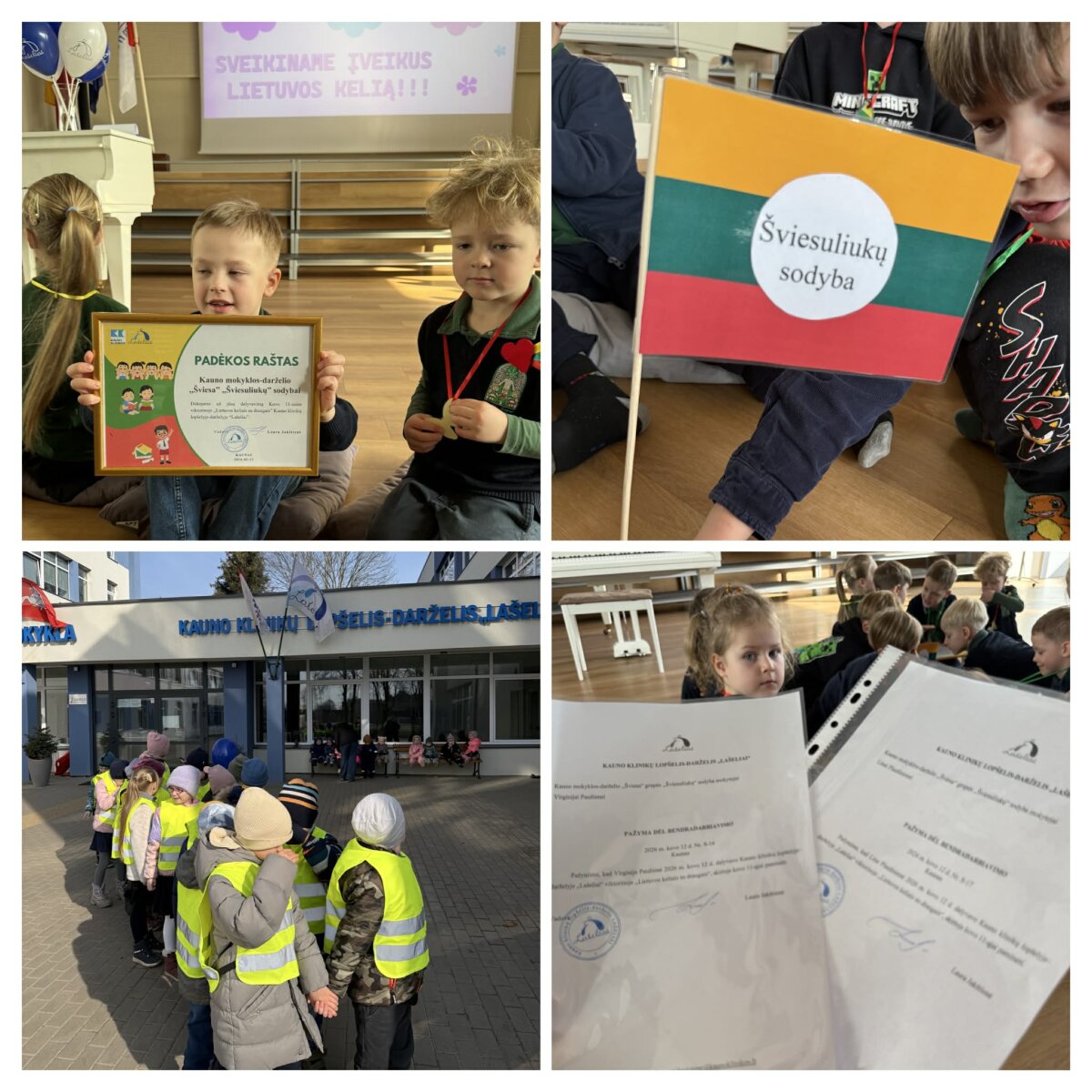 Šviesuliukų sodybos vaikai kartu su mokytojomis Virginija ir Lina vyko į Kauno lopšelį-darželį „Lašeliai“, kur dalyvavo smagioje ir įdomioje viktorinoje „Lietuvos keliais su draugais“. Renginyje dalyvavo priešmokyklinio ugdymo grupių vaikai iš LSMU pradinės mokyklos bei lopšelio-darželio „Lašeliai“. Viktorinos metu vaikai atliko įvairias užduotis, pasitikrino žinias apie Lietuvą, jos miestus, gamtą ir tradicijas. Dalyviai ne tik varžėsi tarpusavyje, bet ir mokėsi bendradarbiauti, džiaugtis bendromis veiklomis bei naujomis pažintimis. Smagi kelionė ir turiningas renginys vaikams paliko daug gerų emocijų, naujų įspūdžių ir gražių prisiminimų. Tokios veiklos skatina vaikų smalsumą, bendravimą bei domėjimąsi savo šalimi.