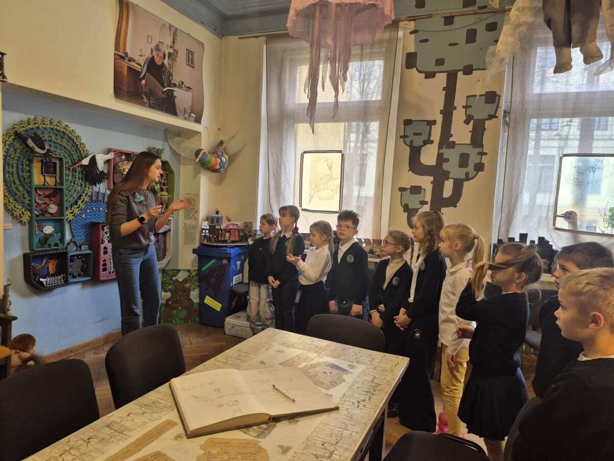 Darbštuoliai ir Linksmuoliai svečiavosi pasakų namuose – Vaikų literatūros muziejuje. Dalyvavo pažintinėje ekskursijoje, aplankė muziejaus erdves, susipažino su įvairiais lietuvių rašytojais, jų pagrindiniais pasakų personažais, išgirdo ne vieną pasakos istoriją, įsikūnijo į knygų veikėjus – turėjo galimybę „pasimatuoti“ jų kostiumus, „palikti“ visas savo ydas, įlipti į raketą, su kuria V. Žilinskaitės veikėjai skrido į Tandadriką. Buvo gera, jauku ir įdomu.
