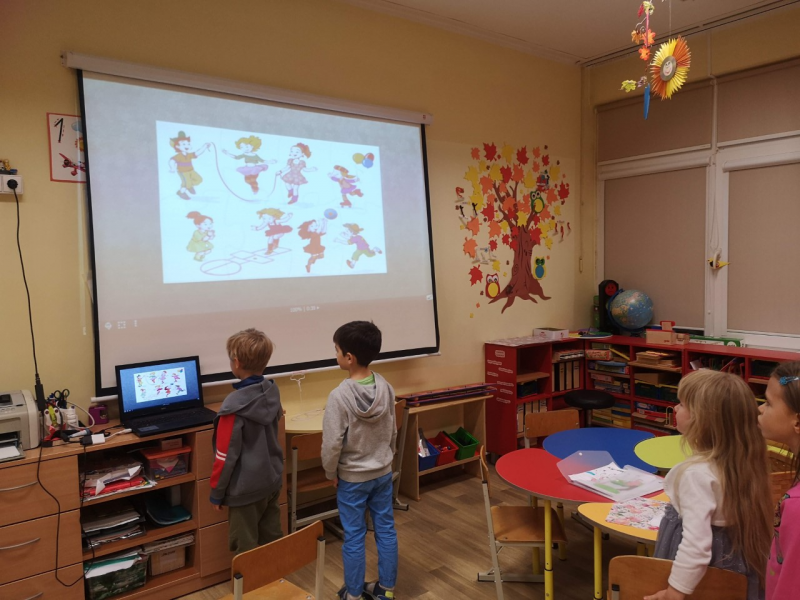 „Šviesuliukų“ ir „Moksliukų“ sodybų vaikai kartu su mokytoja Rasa P. nuo rugsėjo iki gruodžio dalyvavo tarptautiniame eTwinning projekte „Let’s play“. Žaisdami vaikai lavino savo kūrybiškumą, kalbinius įgūdžius, sprendė žaidimų metu kilusias problemas, stiprėjo jų socialiniai įgūdžiai. Vaikams patiko kurti istorijas, vaidinti personažus ar su pirštukinėmis lėlėmis, atlikti užduotis, padedančias gerinti pusiausvyrą, vikrumą, mąstymą. Ypač populiarus tapo žaidimas „Spėk kas“. Žaisdami skaitmeninius žaidimus vaikai sužinojo apie saugų elgesį internete, buvo smagu su pragrama „ChatterKids“ įrašyti skaičiuotes, daineles. Kartu su šviesuliukais pagaminome žaidimą žaisti su kauliuku, sugalvojome šūkį: „Žaiskime, vaikai, nežiūrėkime tik į ekranus!“. Buvo įdomu sužinoti, kokius žaidimus žaidžia kitų šalių vaikai.