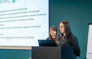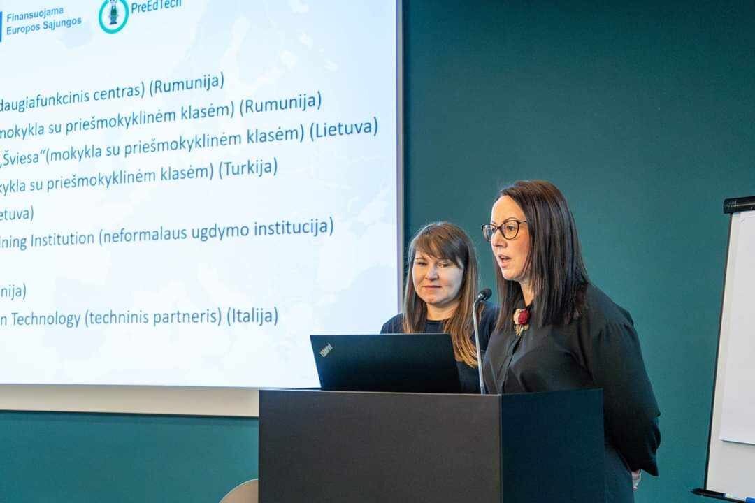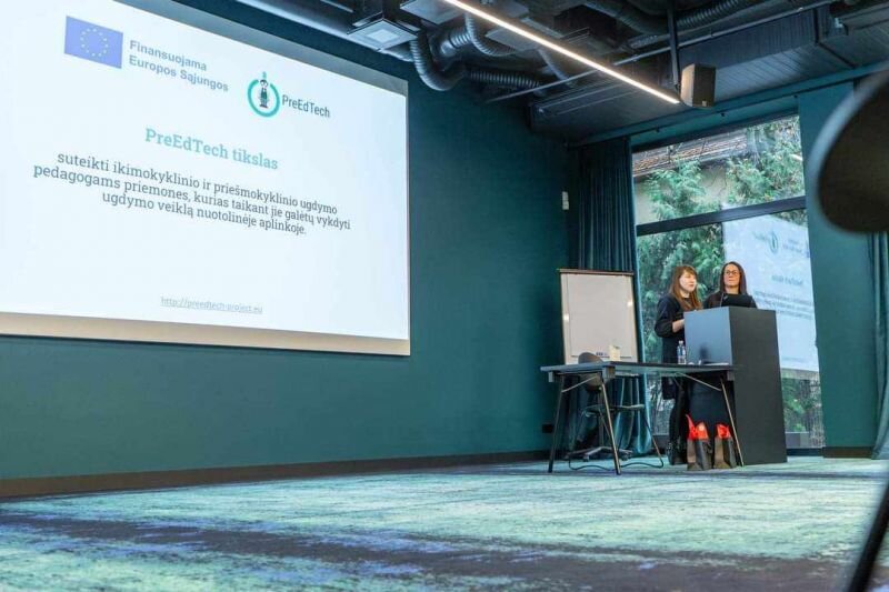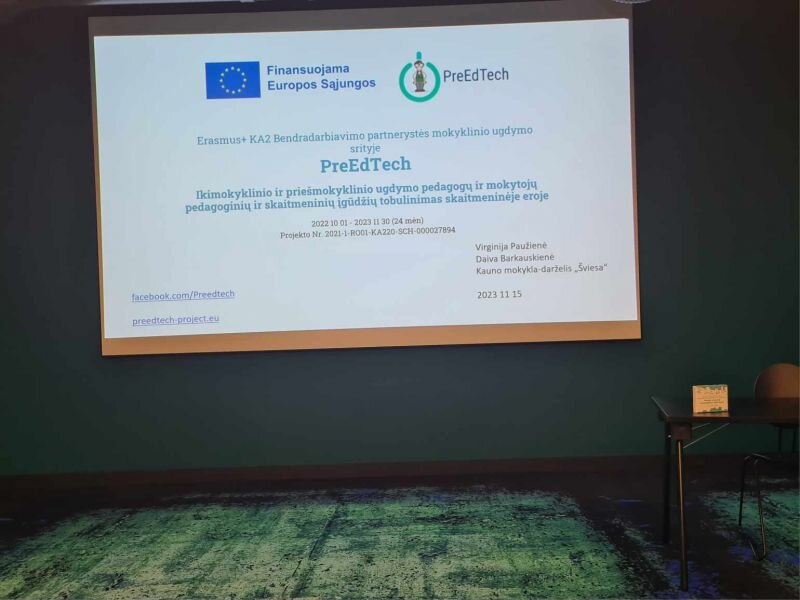 Konferencijos metu kviestiniai pranešėjai bei projektų dalyviai pristatė gerąsias praktikas ir įgyvendinamus „Erasmus+” programos tarptautinius edukacinius projektus, kuriuos jungia skaitmeninis turinys bei žaidybinimas, kaip metodas mokyti ir įtraukti besimokančiuosius. Mūsų mokyklos mokytojos Virginija Paužienė ir Daiva Barkauskienė pristatė Erasmus+ KA2 Bendradarbiavimo partnerystės mokyklinio ugdymo srityje PreEdTech projektą „Ikimokyklinio ir priešmokyklinio ugdymo pedagogų ir mokytojų pedagoginių ir skaitmeninių įgūdžių tobulinimas skaitmeninėje eroje“, kurio tikslas suteikti ikimokyklinio ir priešmokyklinio ugdymo pedagogams priemones, kurias taikant jie galėtų vykdyti ugdymo veiklą nuotolinėje aplinkoje.