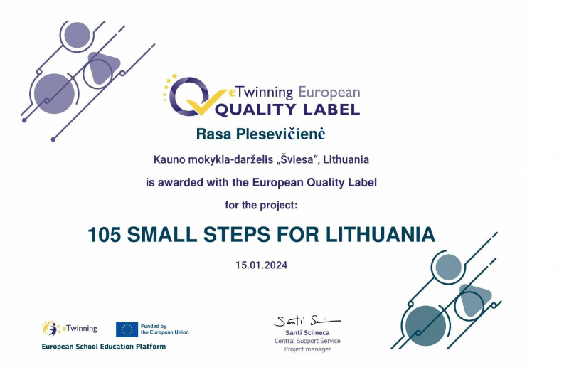 eTwinning projektas „Lietuvai -105 maži žingsneliai/ 105 sm...