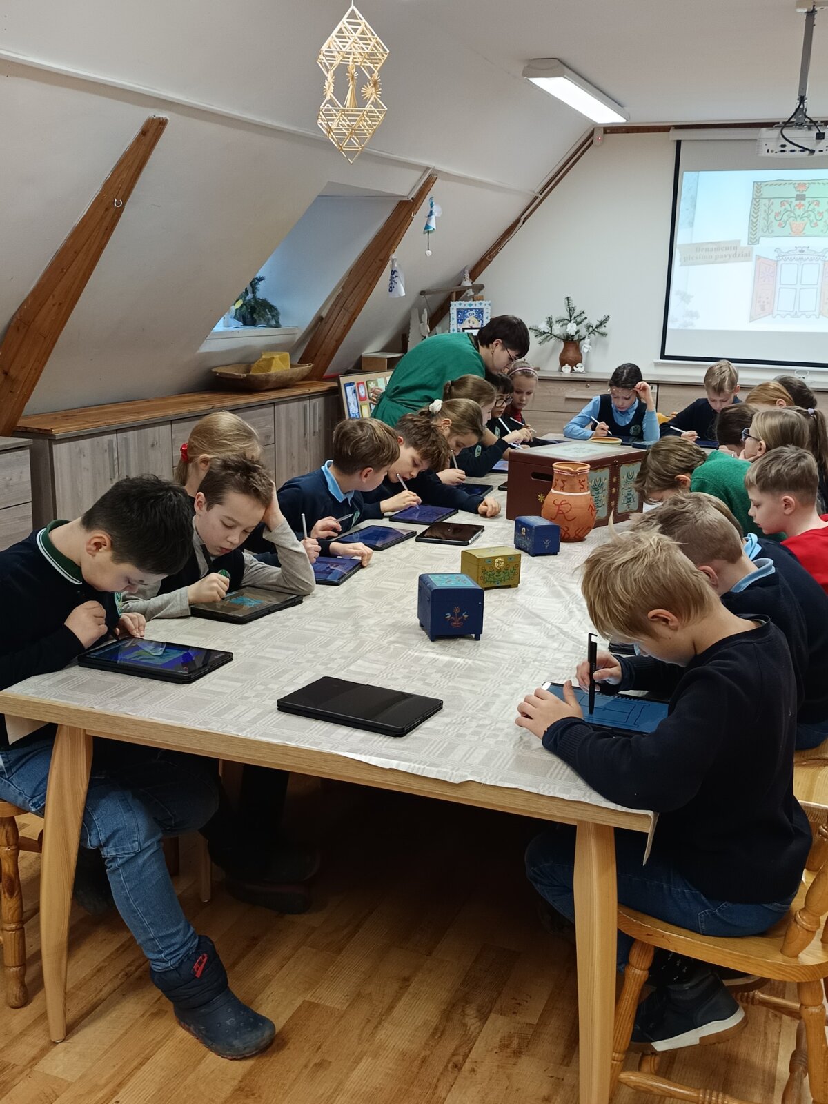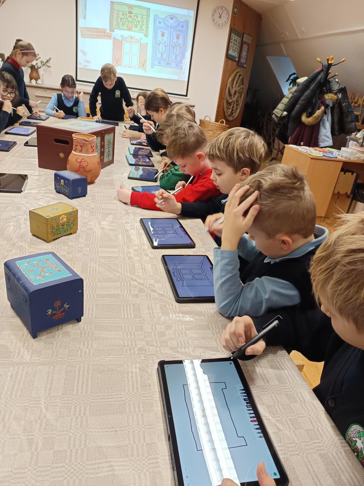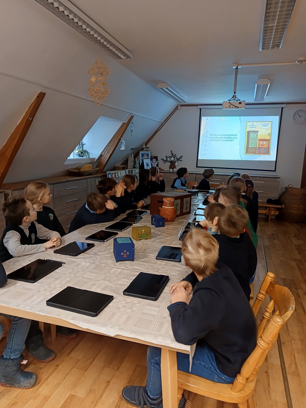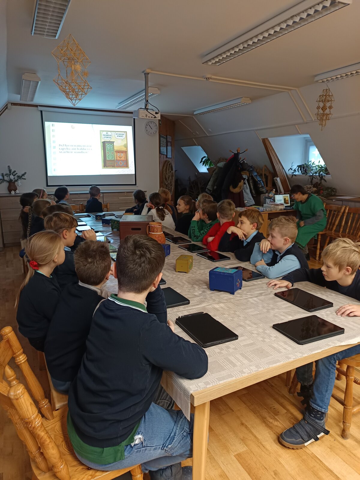 Žmogus gražiausias tada, kai jis kuria. Šiandien smalsiukai buvo labai gražūs, nes pasinėrė į kūrybinį darbą. Kauno Tautinės kultūros centre, įgiję žinių apie tradicinius lietuvių tautos kurtus raštus, juose vaizduojamus simbolius, patys dekoravo pasirinktą senovinį daiktą. Kaip jiems sekėsi, įamžinta šiose nuotraukose. Iš edukacijos grįžo smagiai nusiteikę, nes smagu pasidžiaugti savo ir draugų kūryba.