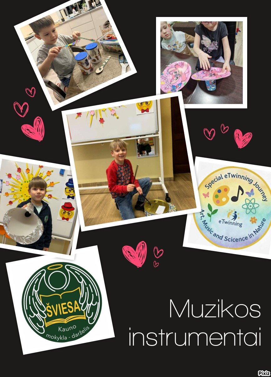 Mokykloje, padedant muzikos mokytojai Erikai, vaikai grojo savo sukurtais instrumentais ir atliko ritmo pratimą. Naudodami BookCreator programą sukūrėme bendrą virtualią knygą–parodą, kuria pasidalijome su projekto partneriais, tėvais ir visa bendruomene.