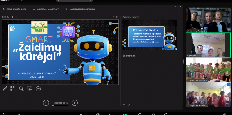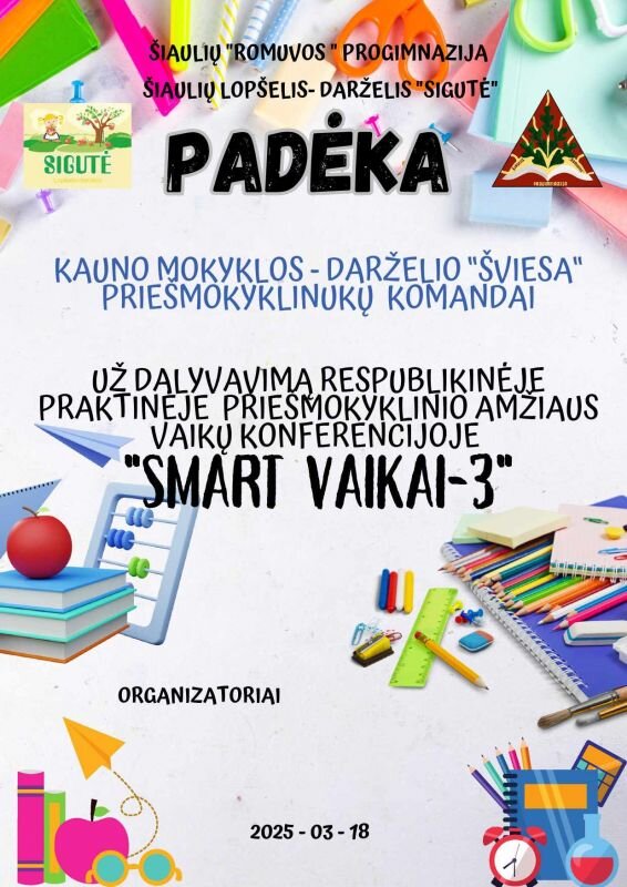 2025 m. kovo 18 d. Šiaulių lopšelyje-darželyje „Sigutė“ vyko jau tradicine tapusi respublikinė vaikų konferencija „SMART vaikai-3“, kurią kartu organizavo ir Šiaulių „Romuvos“ progimnazijos priešmokyklinio ugdymo mokytojos. Konferencijos tikslas–pristatyti naudojamus IKT įrankius, skaitmenines technologijas, kuriuos praktiškai išbandė patys vaikai. Konferencija vyko hibridiniu būdu, nuotoliu jungėsi ir pranešimus pristatė Kėdainių lopšelio-darželio „Pasaka“, Kauno mokyklos-darželio „Šviesa“ ugdytiniai su mokytoja Virginija Paužiene ir Kauno lopšelio-darželio „Šarkelė“ vaikai. Pranešimus „gyvai“ pristatė 3 Šiaulių „Romuvos“ progimnazijos priešmokyklinio ugdymo vaikai ir Šiaulių lopšelio-darželio „Žirniukas“. „Šviesuliukai“ su mokytoja pristatė draugams pranešimą tema “Pranešimų kūrimas su Chatterpix“. Vaikai pasidalino savo patirtimi kada ir kam naudoja šį įrankį. Šios programėlės pagalba galima sukurti įvairius žaismingus pristatymus, juokingus sveikinimus. Šia programa vaikai įgarsino ir papasakojo apie Lietuvos nacionalinį medį –ąžuolą. Tad ir trečius metus dalyvauta konferencijoje pateisino lūkesčius: vaikai lavino komunikavimo, skaitmeninio raštingumo kompetencijas. Na o populiariausi naudojami ir toliau išlieka ChaterPix, Animated Drawing, Quiver Vision, Wordwall, Movie Maker skaitmeninio mokomojo turinio, žaidimų kūrimo įrankiai.